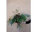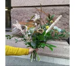 Naturligt bunden bukett av säsongens blommor. Buketten innehåller torkadeblommor.