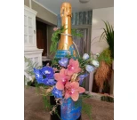 Produkter Huvudkransar och andra binderier Flaskdekoration blå Flaskdekoration blå Flaskan ingår inte i priset!