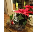 Plantering med amaryllis, hyacint, julstjärna och sypress. Välj färgen på amaryllisen.
