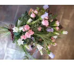 Naturlig sorgbukett med kvistros, campanula och panicum.