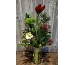 Kimppu jossa amaryllista ja muuta leikkokukkaa.