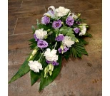 Valkoista neilikkaa ja laventelin väristä eustomaa.