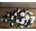 Hautavihko on perinteisin viimeinen kukkatervehdys vainajalle. Kuvan hautavihkossa on valkoista neilikkaa sekä violettia eustomaa.
